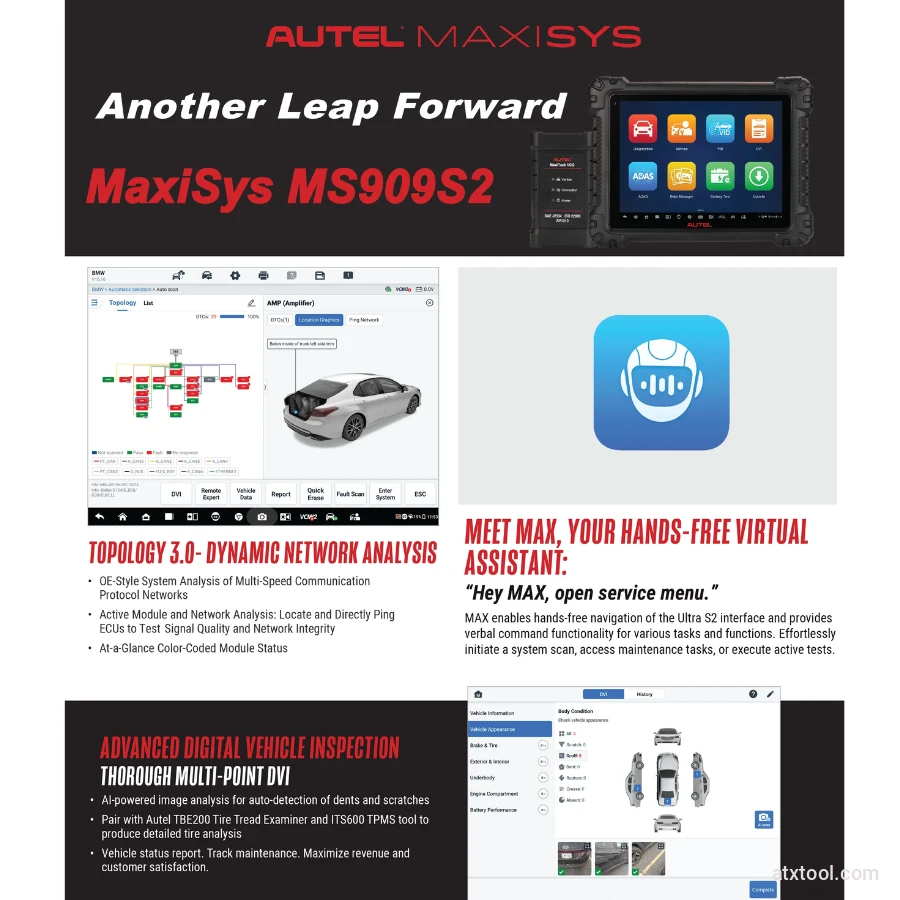 The Autel MaxiSys MS909S2 is a next-generation, high-performance diagnostic tablet designed to revolutionize workshop efficiency. Built on the latest Android 13 platform, this tool leverages Artificial Intelligence and advanced data-driven diagnostics to provide technicians with deeper insights into vehicle performance. With its massive 11-inch high-resolution display and upgraded 12GB RAM, the MS909S2 offers the fastest processing speeds in its class for complex system analysis and ECU programming.