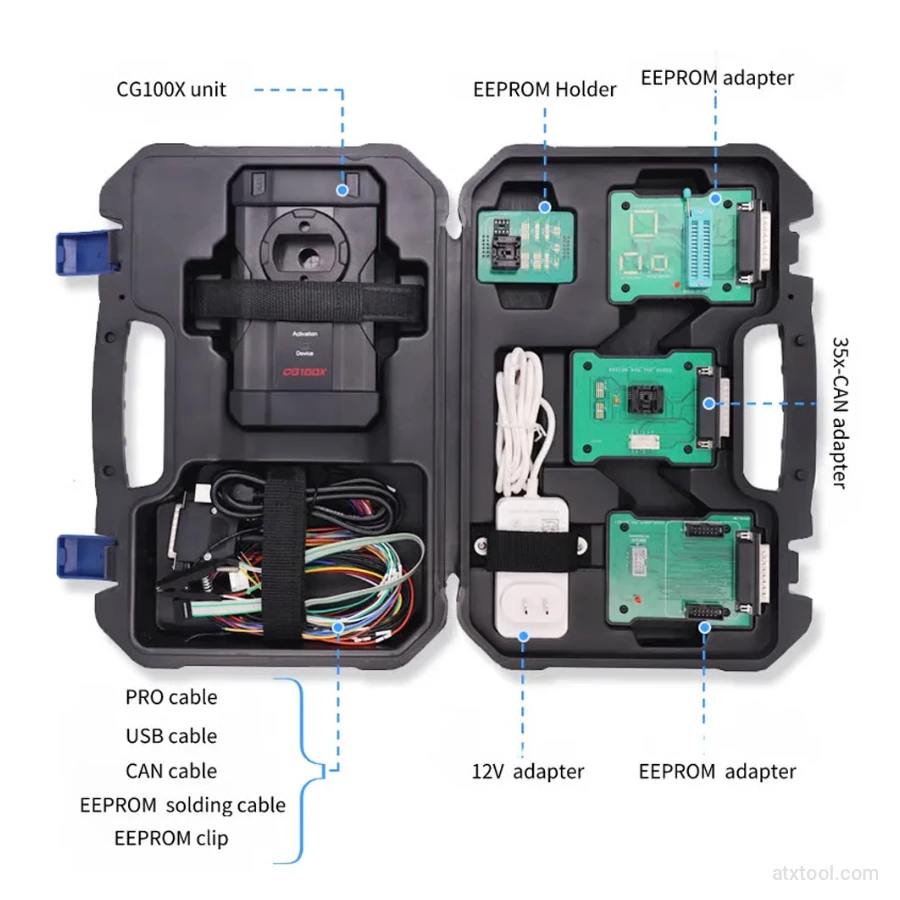 The CGDI CG100X is the latest generation of professional smart car programmers, succeeding the popular CG100. It is a highly versatile tool designed for airbag resetting, mileage adjustment, and ECU/BCM chip reading. Powered by high-speed hardware and intelligent algorithms, it covers over 90% of vehicle modules on the market, including cars, motorcycles, and engineering vehicles.